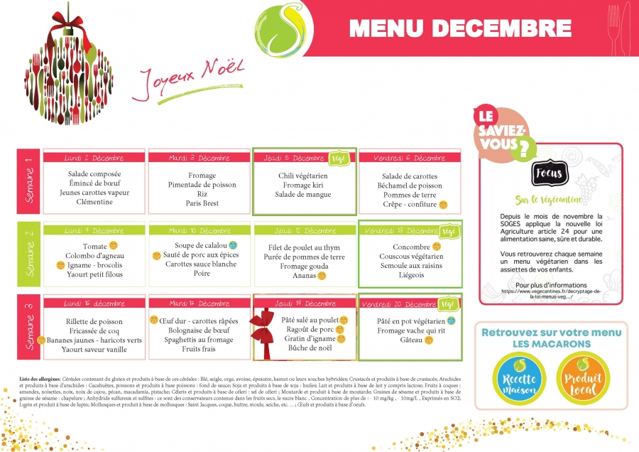 Télécharger le menu du mois de décembre 2019 des écoles maternelles et élémentaires du sud de la Martinique