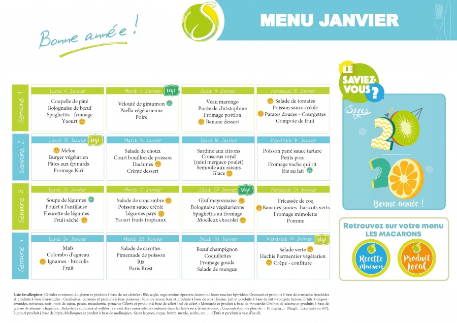 Télécharger le menu du mois de janvier 2020 des écoles maternelles et élémentaires du sud de la Martinique